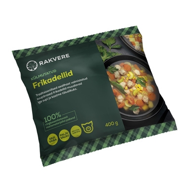 Koostisosad: Sealiha 63%,vesi,kuivikujahu (sh NISU), MUNAvalgemass,vadakupulber (sh PIIM), sool, sibulapulber, SOJAvalk, glükoos, lõhna- ja maitseained, must pipar. Võib sisaldada vähesel määral SINEPIT, SELLERIT, OTRA ja KAERA. Frikadelli suurus 16*16 mm